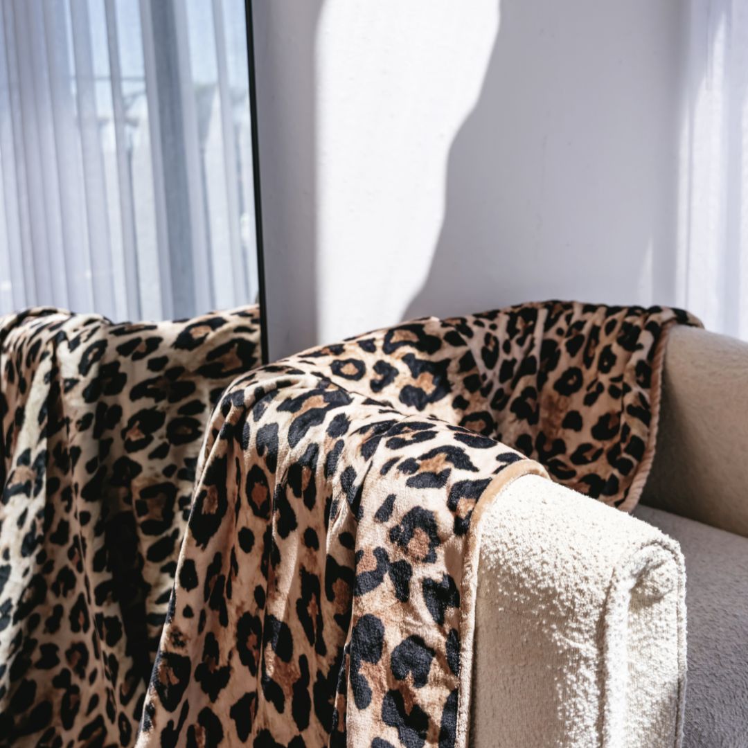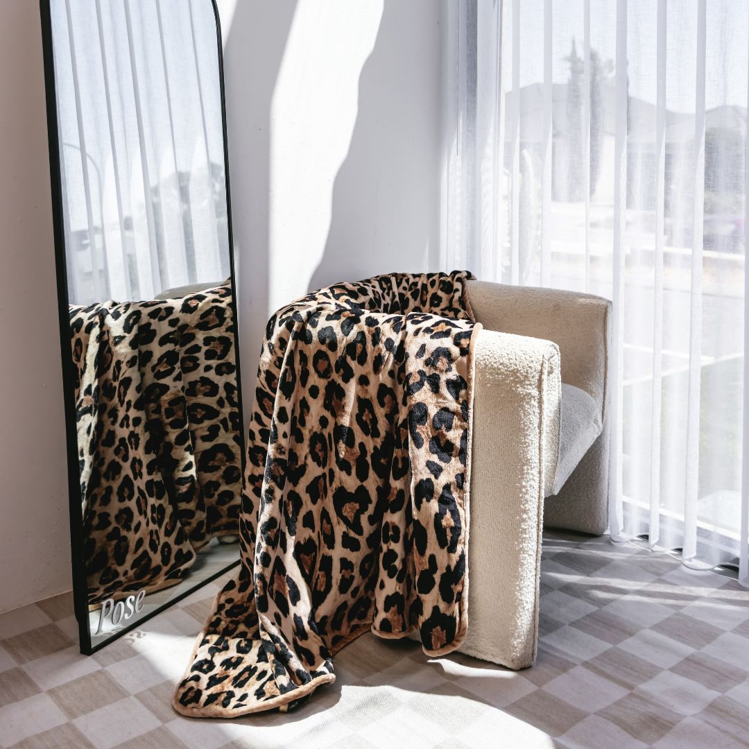 Unleash your wild side with the Leopard Print Splash Blanket - where fierce meets functional.