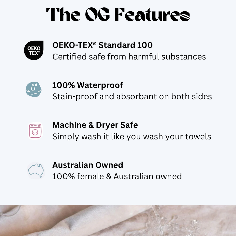 Each blanket is 100% waterproof, double-sided and absorbent.