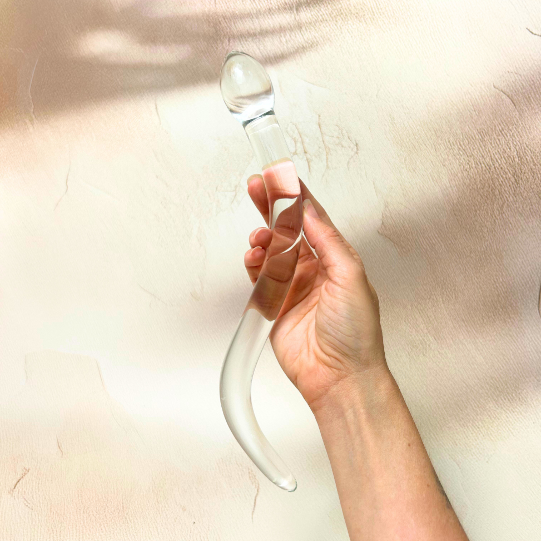 Clear cervix serpent pleasure wand 2.0. Glass pleasure wand designed for pelvic dearmouring, massage and self pleasure.