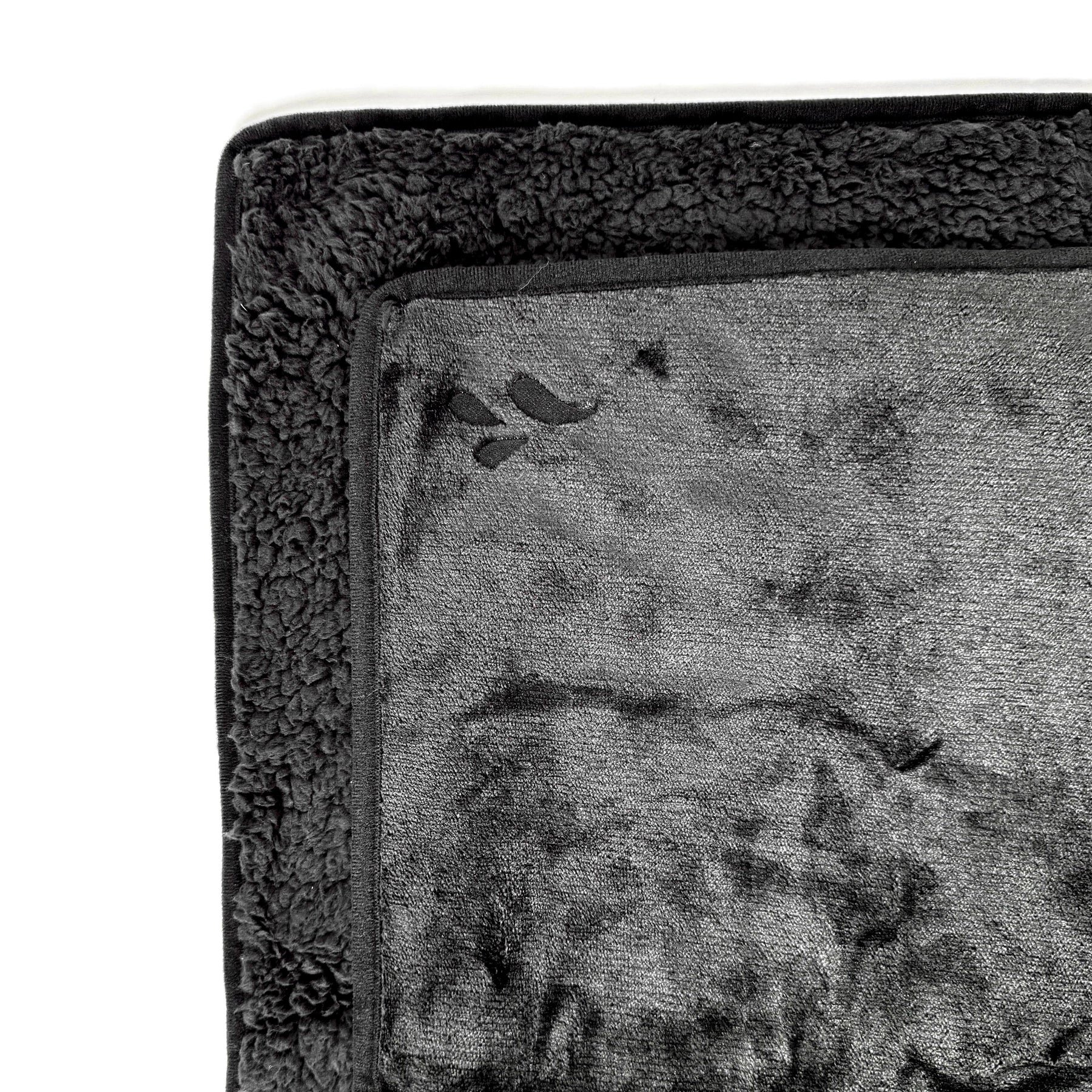 Smooth micro-velvet fabric with a fluffy sherpa fleece on the other side.