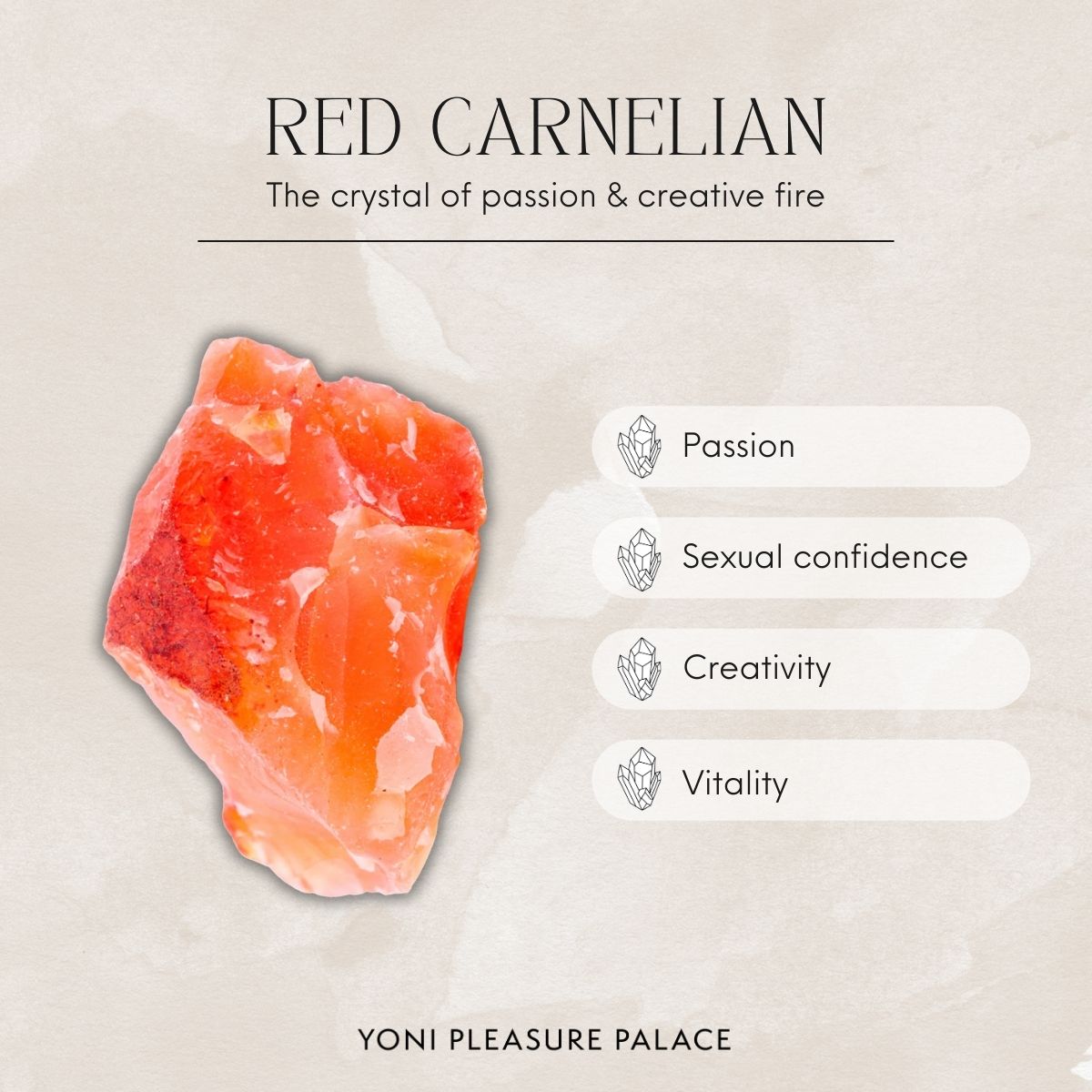 The Shakti Trio is our most feminine collection of yoni crystals - activating three of our most powerful feminine chakra points in the body. The Red Carnelian helps to activate your Sacral Chakra, the Rose Quartz activates your Heart Chakra and the Amethyst helps to awaken your Crown Chakra.
